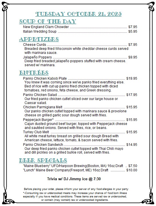 PLEASE INFORM YOUR SERVER IF ANYONE IN YOUR PARTY HAS A FOOD RELATED ALLERGY